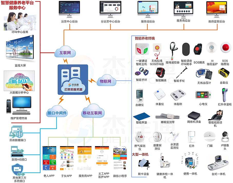 杰佳通智慧健康養(yǎng)老平臺(tái)應(yīng)用于居家養(yǎng)老、機(jī)構(gòu)養(yǎng)老、社區(qū)養(yǎng)老、醫(yī)養(yǎng)結(jié)合、地產(chǎn)養(yǎng)老、旅居養(yǎng)老、養(yǎng)老教學(xué)實(shí)訓(xùn)和政府監(jiān)管養(yǎng)老,已有幾千家養(yǎng)老運(yùn)營單位在使用。