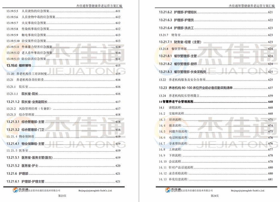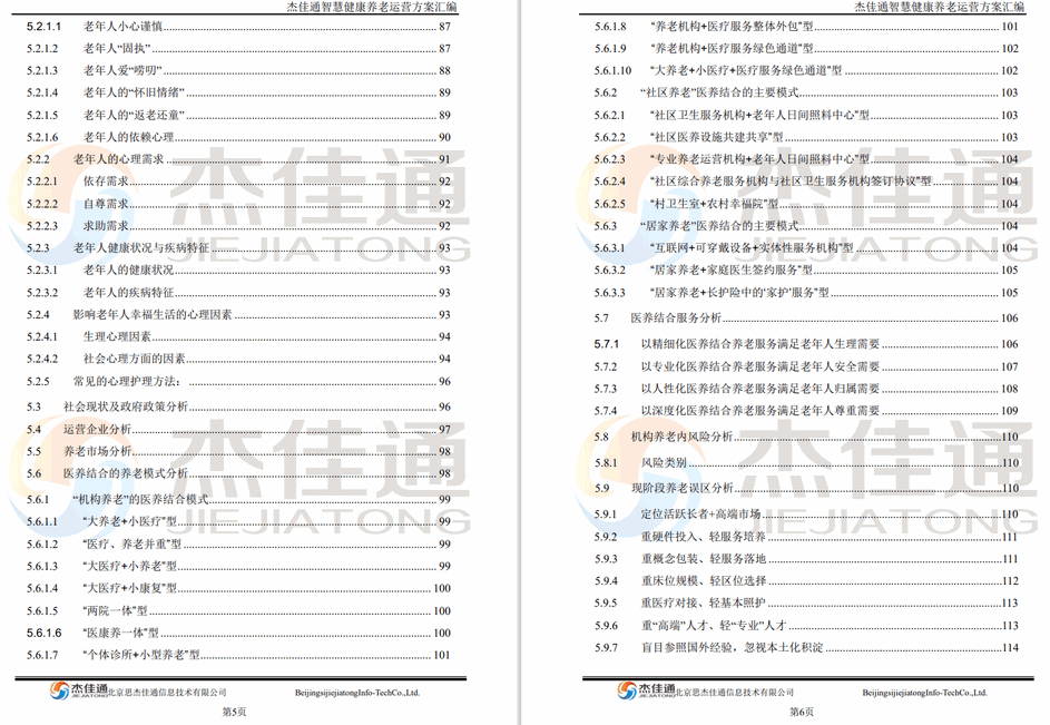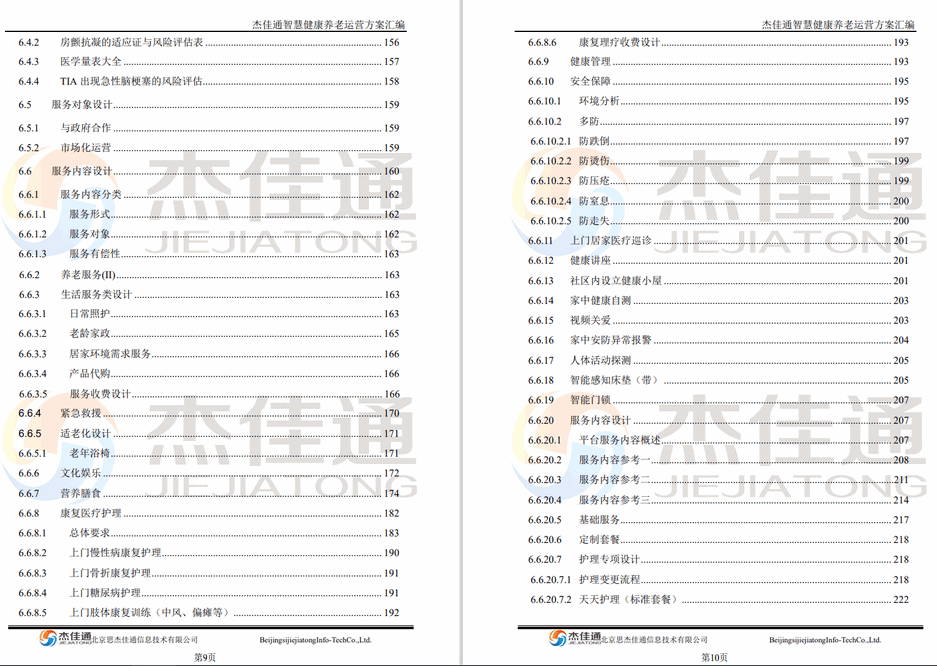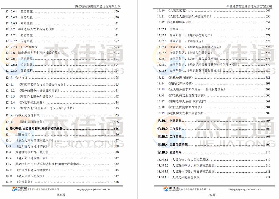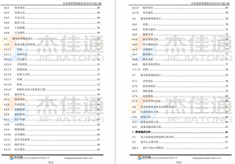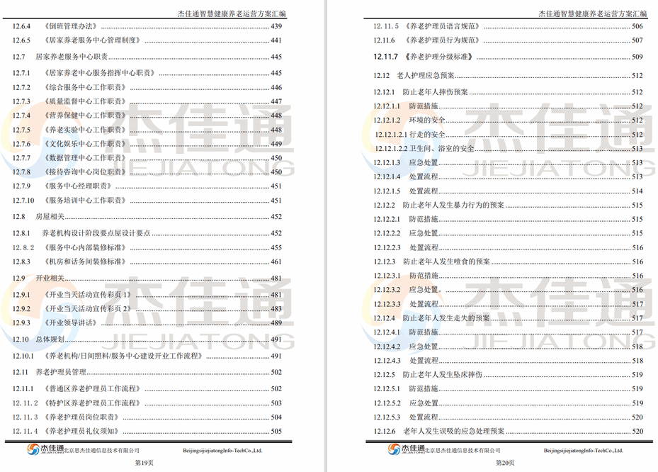 本養(yǎng)老運營方案凝聚了杰佳通工程師們16年的心血,總結出了居家養(yǎng)老、機構養(yǎng)老、社區(qū)養(yǎng)老運營過程中團隊組建、運營設計、方案設計、活動設計、老人心里分析、各種環(huán)境下的養(yǎng)老運營盈利模式等等,方案每月都在更新,目前已經(jīng)更新到近千頁,方案精細,細致到在社區(qū)如何組織老人活動,如何書寫宣傳語,如何和老人簽訂協(xié)議,即使你是“0”基礎入門養(yǎng)老,也可以讓您快速上手,快速盈利;既避免了您少走彎路,又避免了在簡單事情上浪費時間,充分把杰佳通智慧養(yǎng)老平臺的精髓融入到養(yǎng)老運營中。